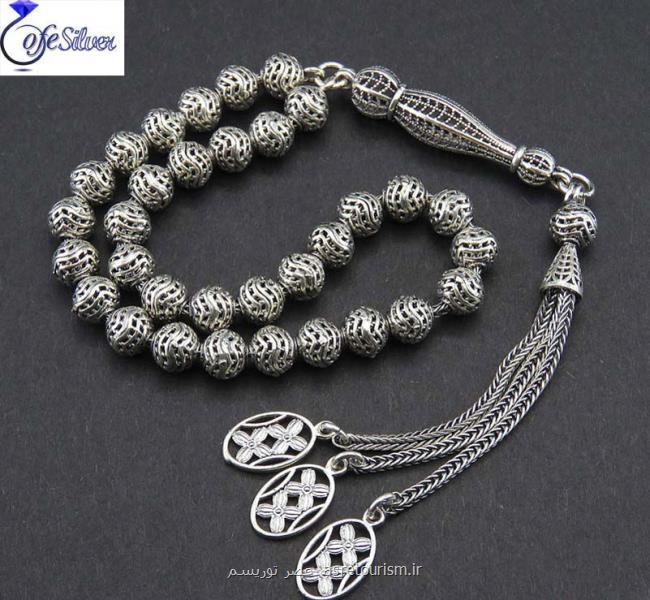 1-در بین مدل های بی شماری که تسبیح وجود دارد، به جرات می توان گفت که تسبیح نقره یکی از زیباترین و چشم نوازترین تسبیح هاست. این نوع تسبیح از نظر قیمت و زیبایی بسیار بالاتر از نمونه های دیگر است. مجموعه ای از مهره های نقره ای با تزیینات مختلف به وسیله یک رشته سیم به هم متصل می شوند و ظاهری چشم نواز را ایجاد می کنند.